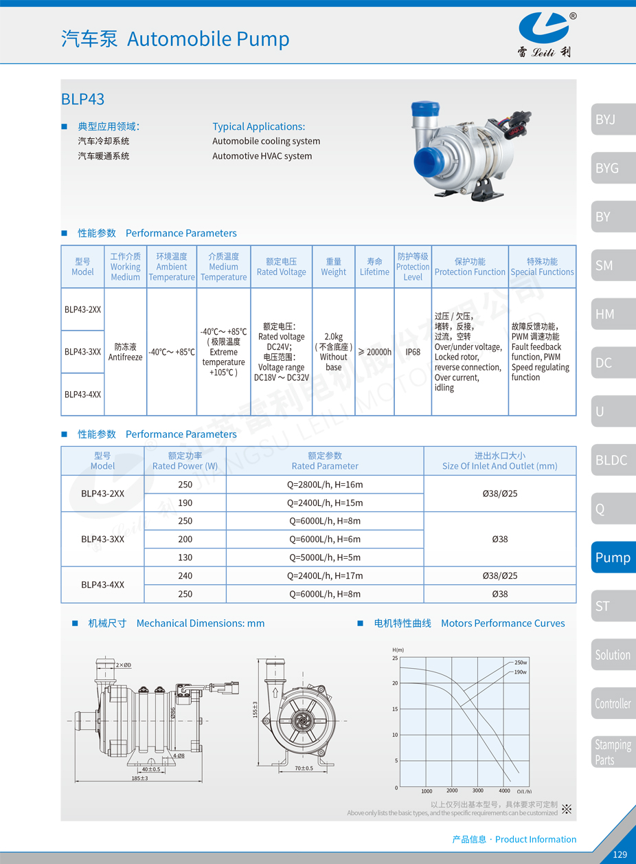 | BLP43-4XX | 240 | Q=2400L/h, H=17m | Ø38/Ø25 |